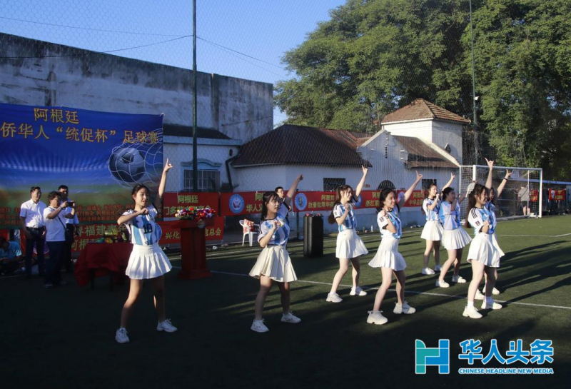 由阿根廷華文教育基金會靜雅舞蹈藝術(shù)團(tuán)組成的啦啦隊在閉幕式期間進(jìn)行精彩表演