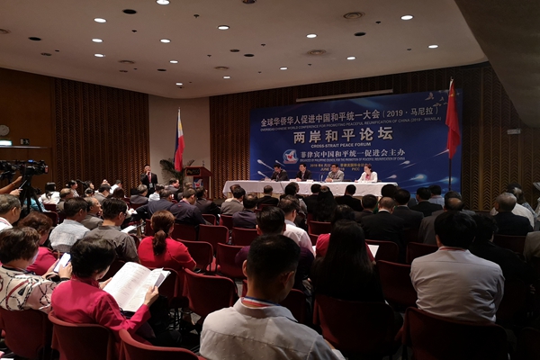 大會(huì)期間,與會(huì)代表圍繞“兩岸和平發(fā)展”、“兩岸經(jīng)貿(mào)文化交流”“‘一國(guó)兩制’臺(tái)灣方案”“新時(shí)代中華青年”等主題舉辦了四個(gè)分組論壇,與會(huì)代表積極參與,深入研討,達(dá)成了共識(shí),發(fā)表了《全球華僑華人促進(jìn)中國(guó)和平統(tǒng)一大會(huì)(2019·馬尼拉)宣言》。宣言指出,海外華僑華人堅(jiān)決擁護(hù)習(xí)近平總書(shū)記在《告臺(tái)灣同胞書(shū)》發(fā)表40周年紀(jì)念會(huì)上提出的“五項(xiàng)主張”,堅(jiān)定支持中國(guó)政府采取一切必要措施打擊“臺(tái)獨(dú)”,堅(jiān)決反對(duì)外部勢(shì)力干涉中國(guó)內(nèi)政。中國(guó)必須統(tǒng)一,也必然統(tǒng)一。倡議海內(nèi)外中華兒女團(tuán)結(jié)一致,共同為中國(guó)和平統(tǒng)一偉大事業(yè)不懈奮斗,推動(dòng)中華民族偉大復(fù)興的中國(guó)夢(mèng)早日實(shí)現(xiàn)!