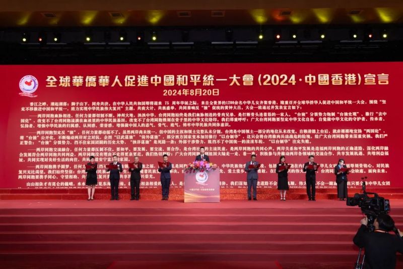 大會由中國和平統(tǒng)一促進(jìn)會香港總會主辦,主題為“堅定不移推進(jìn)中國和平統(tǒng)一,致力實現(xiàn)中華民族偉大復(fù)興”。會議通過《香港宣言·2024》,會后港澳臺及海外嘉賓圍繞“主動融入國家發(fā)展大局,積極促進(jìn)兩岸融合發(fā)展”、“發(fā)揮青年力量,推動祖國統(tǒng)一”、“如何在新時代更好傳承發(fā)展中華傳統(tǒng)文化”主題,舉辦了分論壇。