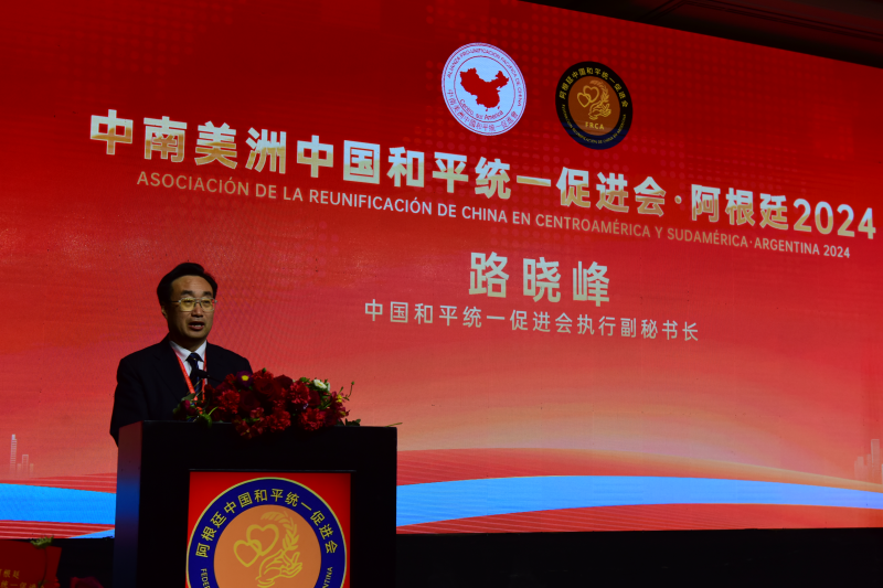 當?shù)貢r間10月18日,由阿根廷中國和平統(tǒng)一促進會主辦的中南美洲中國和平統(tǒng)一促進會2024年年會在阿根廷首都布宜諾斯艾利斯隆重舉行。圍繞“鑄牢中華民族共同體意識,為早日實現(xiàn)中國統(tǒng)一大業(yè)而努力奮斗”主題,廣泛凝聚共識,共商祖國統(tǒng)一大計。中國和平統(tǒng)一促進會執(zhí)行副秘書長路曉峰率團出席并致辭。中央臺辦、中國僑聯(lián)、中國駐阿根廷大使館等單位領(lǐng)導和來自中南美洲16個國家、地區(qū)的統(tǒng)促會及僑團代表約300人出席。