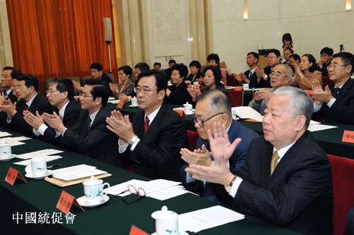 中國和平統一促進會副會長周鐵農主持會議。中國和平統一促進會副會長何魯麗、羅豪才、張克輝及常務理事出席會議。