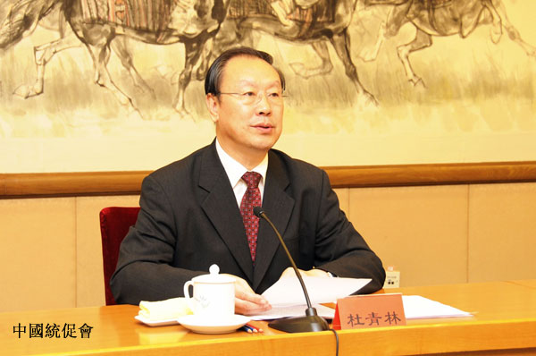 杜青林對今后統促會的工作提出四個期望:要堅持深入貫徹中央對臺方針政策與發揮中國統促會自身優勢相結合,發揮好聯系廣泛、包容性強、人才薈萃和方式靈活的優勢,找準圍繞中心的切入點,選準服務大局的突破口,切實把中央對臺方針政策落到實處;要堅持反對“臺獨”等分裂活動與爭取人心相統一,在反對一切形式的分裂活動上下功夫,在密切兩岸同胞聯系上下功夫,在鞏固和拓展入島交流成果上下功夫,為爭取人心營造有利氛圍、創造良好環境;要堅持深化調查研究與推進機制建設相統籌,要切實加強調查研究工作,大力推進工作機制建設,增強工作的針對性、預見性和有效性;要堅持開展業務工作與加強自身建設相協調,充分發揮專業委員會的獨特作用,繼續加強中國統促會機關建設,進一步優化整合資源,以自身建設的不斷強化推動業務工作的有效開展。